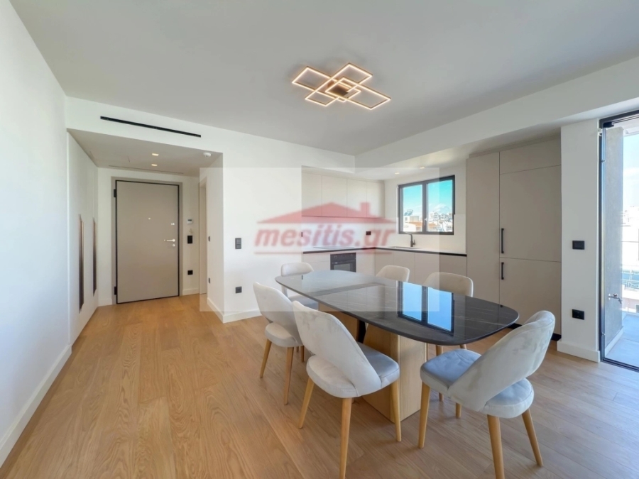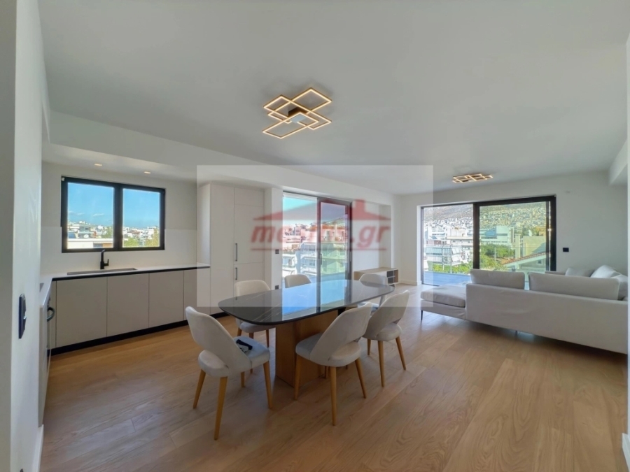 Διαμέρισμα 95 τ.μ. 5ου ορόφου στη περιοχή του Αλίμου. Είναι σε νεόδμητη πολυκατοικία κατασκευής του 2024 minimal αισθητικής και υψηλής ενεργειακής απόδοσης. Αποτελείται από σαλόνι, κουζίνα, δύο υπνοδωμάτια και δύο μπάνια. Διαθέτει κουφώματα αλουμινίου με διπλά τζάμια θερμοδιακοπτόμενα και σίτες, πόρτα ασφαλείας, θυροτηλεόραση, θέρμανση με αντλία θερμότητας, θέση στάθμευσης, αποθήκη και ευρύχωρες βεράντες με πανοραμική θέα. Βρίσκεται σε ήσυχη γειτονιά του Αλίμου κοντά σε αγορά, συγκοινωνίες, πάρκα και σχολεία.