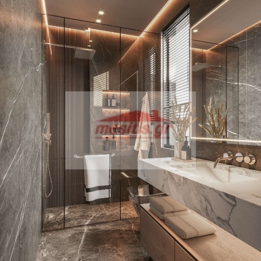 Πολυτελής μεζονέτα 124 τ.μ., 5ου-6ου ορόφου στο Ελληνικό. Βρίσκεται σε υπό κατασκευή κτίριο, προς παράδοση περίπου την άνοιξη του 2027. Αποτελείται από δύο ορόφους που συνδέονται με εσωτερική σκάλα. Στον 5ο όροφο υπάρχει ένας ενιαίος χώρος σαλονιού, κουζίνας, τραπεζαρίας, ένα master υπνοδωμάτιο και ένα wc . Στον 6ο όροφο υπαρχουν δύο master  υπνοδωμάτια με τα μπάνια τους και τζακούζι.  Διαθέτει πόρτα ασφαλείας, ενεργειακό τζάκι στο σαλόνι, ατομική θέρμανση με αντλία θερμότητας, ενδοδαπέδια θέρμανση, διπλά τζάμια ενεργειακά και θερμοδιακοπτόμενα, ηλεκτρικά ρολλά και σίτες και εγκατάσταση για ηλιακό θερμοσίφωνα, κλιματισμό και συναγερμό. Στο διαμέρισμα αντιστοιχεί μία αποθήκη και θέση στάθμευσης με υποδοχή για φόρτιση ηλεκτρικού αυτοκινήτου.