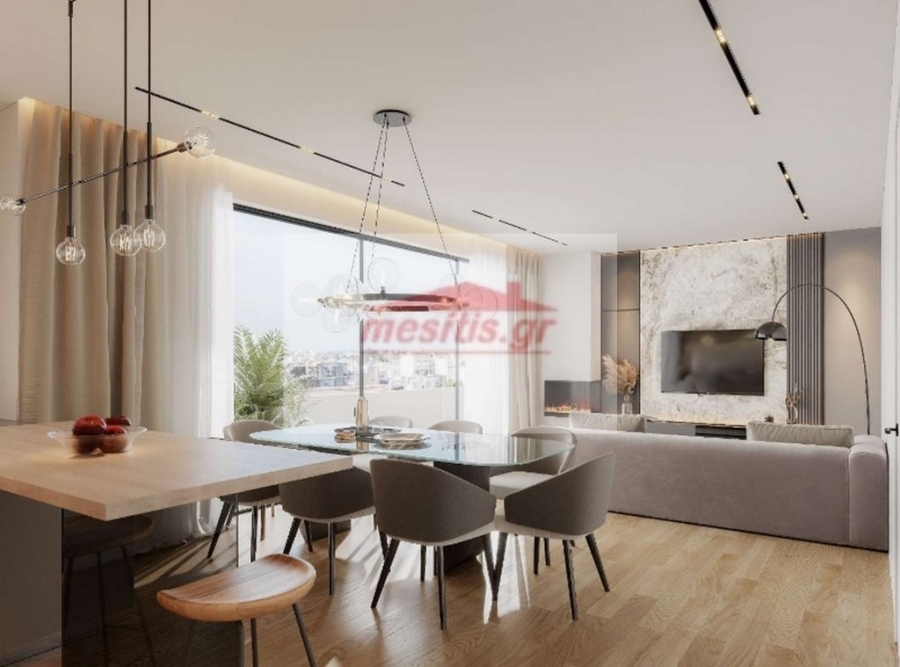 Πολυτελής μεζονέτα 150 τ.μ., 5ου-6ου ορόφου στο Ελληνικό. Βρίσκεται σε υπό κατασκευή κτίριο, προς παράδοση περίπου την άνοιξη του 2027. Αποτελείται από δύο ορόφους που συνδέονται με εσωτερική σκάλα. Στον 5ο όροφο υπάρχει ένας ενιαίος χώρος σαλονιού, κουζίνας, τραπεζαρίας, ένα master υπνοδωμάτιο και ένα wc . Στον 6ο όροφο υπάρχουν δύο master  υπνοδωμάτια με τα μπάνια τους και εξωτερική πισίνα.  Διαθέτει πόρτα ασφαλείας, ενεργειακό τζάκι στο σαλόνι, ατομική θέρμανση με αντλία θερμότητας, ενδοδαπέδια θέρμανση, διπλά τζάμια ενεργειακά και θερμοδιακοπτόμενα, ηλεκτρικά ρολλά και σίτες και εγκατάσταση για ηλιακό θερμοσίφωνα, κλιματισμό και συναγερμό. Στο διαμέρισμα αντιστοιχεί μία αποθήκη και θέση στάθμευσης με υποδοχή για φόρτιση ηλεκτρικού αυτοκινήτου.